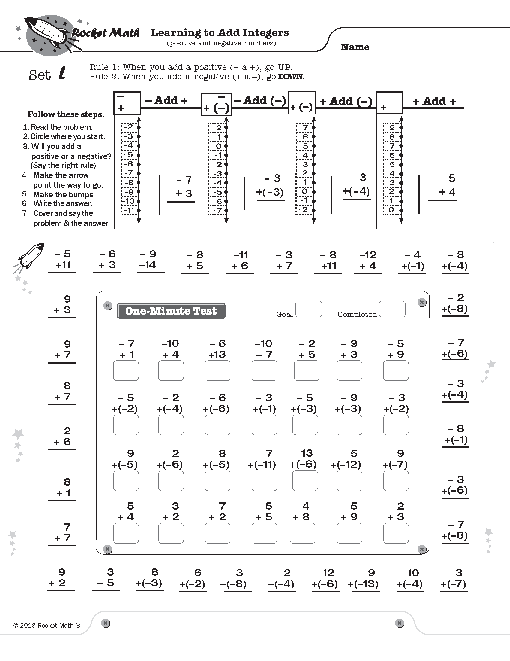 Rocket Math is just such a system. Both the Worksheet Program and the Online Game systematically introduce students to the facts in a careful sequence that they can do. The Worksheet Program and Online Game ask students to memorize only two facts and their reverses at a time.