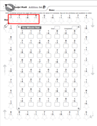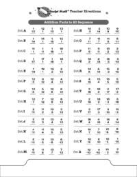 These are the basic single digit Addition facts 1s through 9s. Each of the 26 levels, A through Z, introduces two facts and their reverses. You can see in the picture above of Set B, I have outlined the new facts in red.