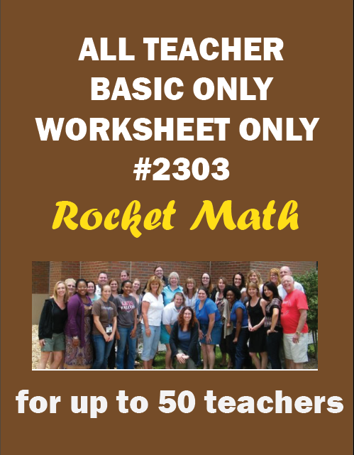 This is the original, 10-minutes-per-day Rocket Math. This ONLY includes the basic four operations (addition, subtraction, multiplication, division) practicing 1s through 9s facts. This worksheet-based program adds two new facts and their reverses on each sheet, so that students are successful by learning in small steps. Students practice daily for two or three minutes in pairs. They say the facts and the answers on each sheet, while their partner gives them extra practice on facts on which they are hesitant or incorrect. After both partners practice, everyone takes a one minute timing on their own sheet. Students who “pass” the timing color in that letter on the Rocket Chart and move on to the next sheet in the sequence.