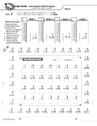 Learning to Add Integers displays problems on a vertical number line and then teaches students two rules about how to solve problems that add positive and negative numbers.